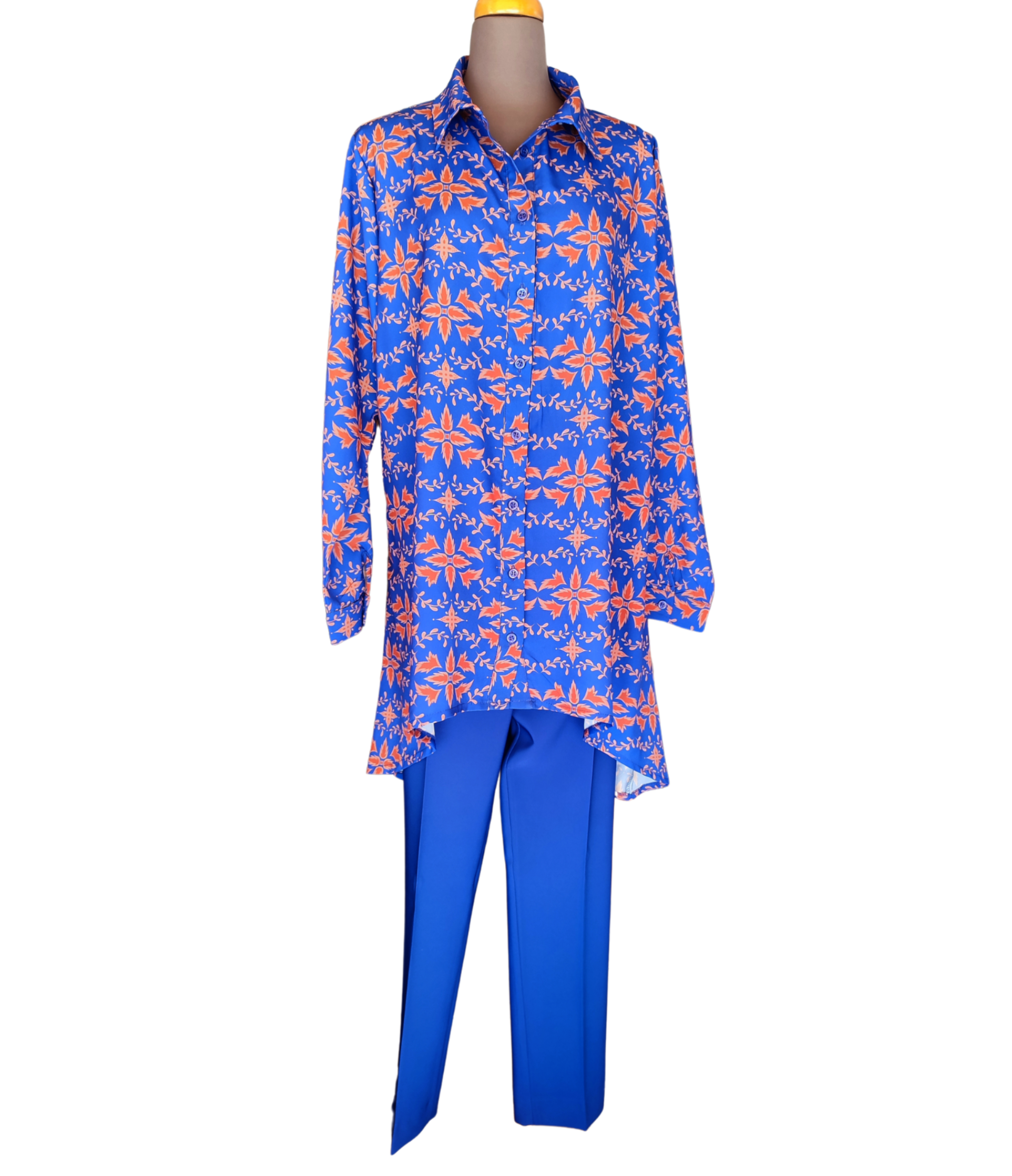 Πουκαμίσα ασύμμετρη, πιο μακριά πίσω, με γιακά.