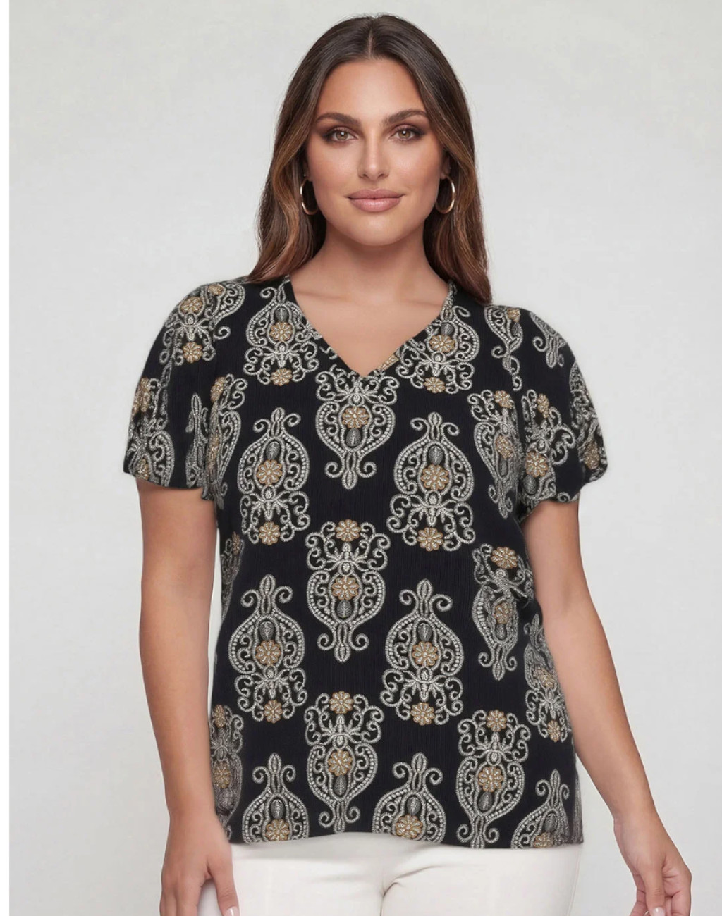 Μπλούζα τύπου λινή με όμορφο μοτίβο. Αέρινη και δροσερή, ιδανική για τις ζεστές μέρες!