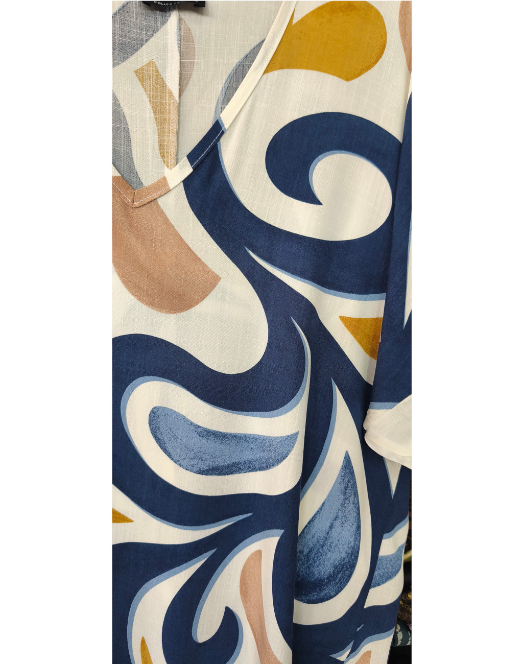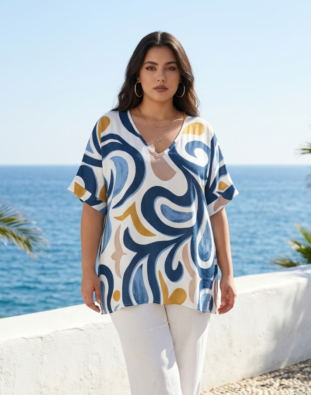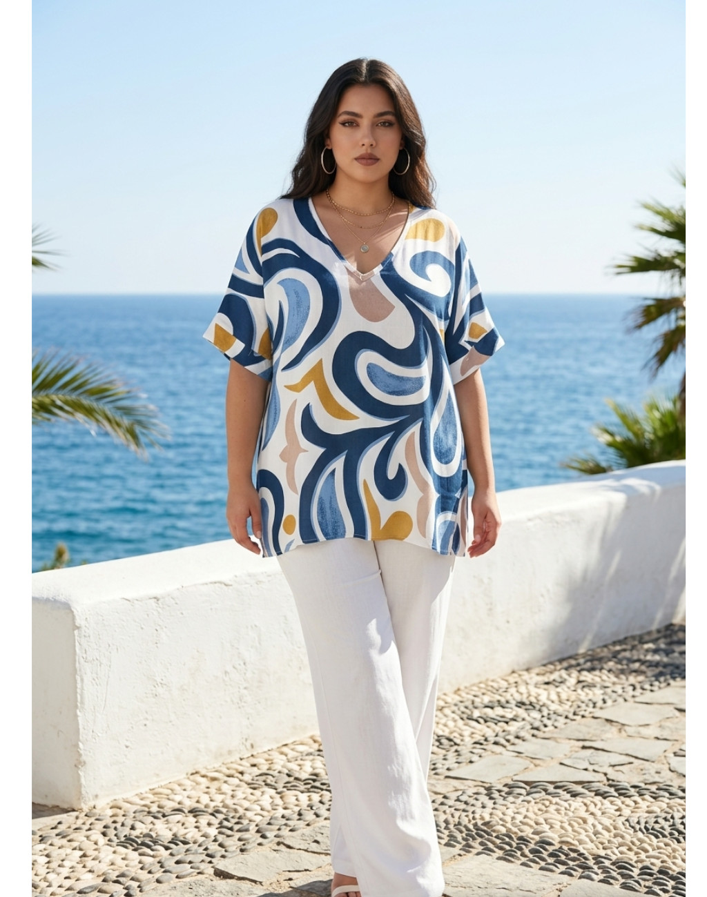 Μπλούζα V – neck βισκόζ με όμορφο μοτίβο. Αέρινη και δροσερή, ιδανική για τις ζεστές μέρες!